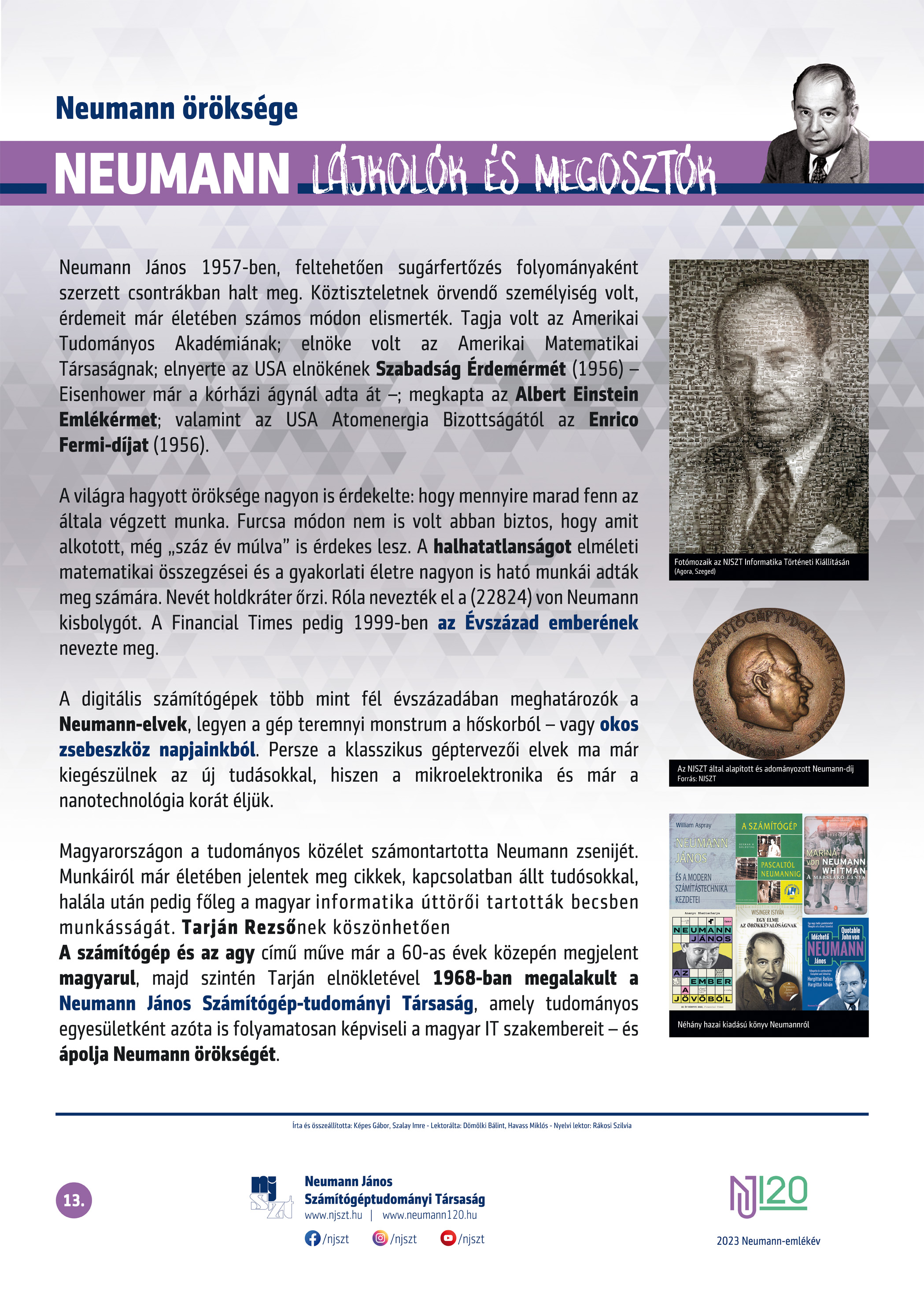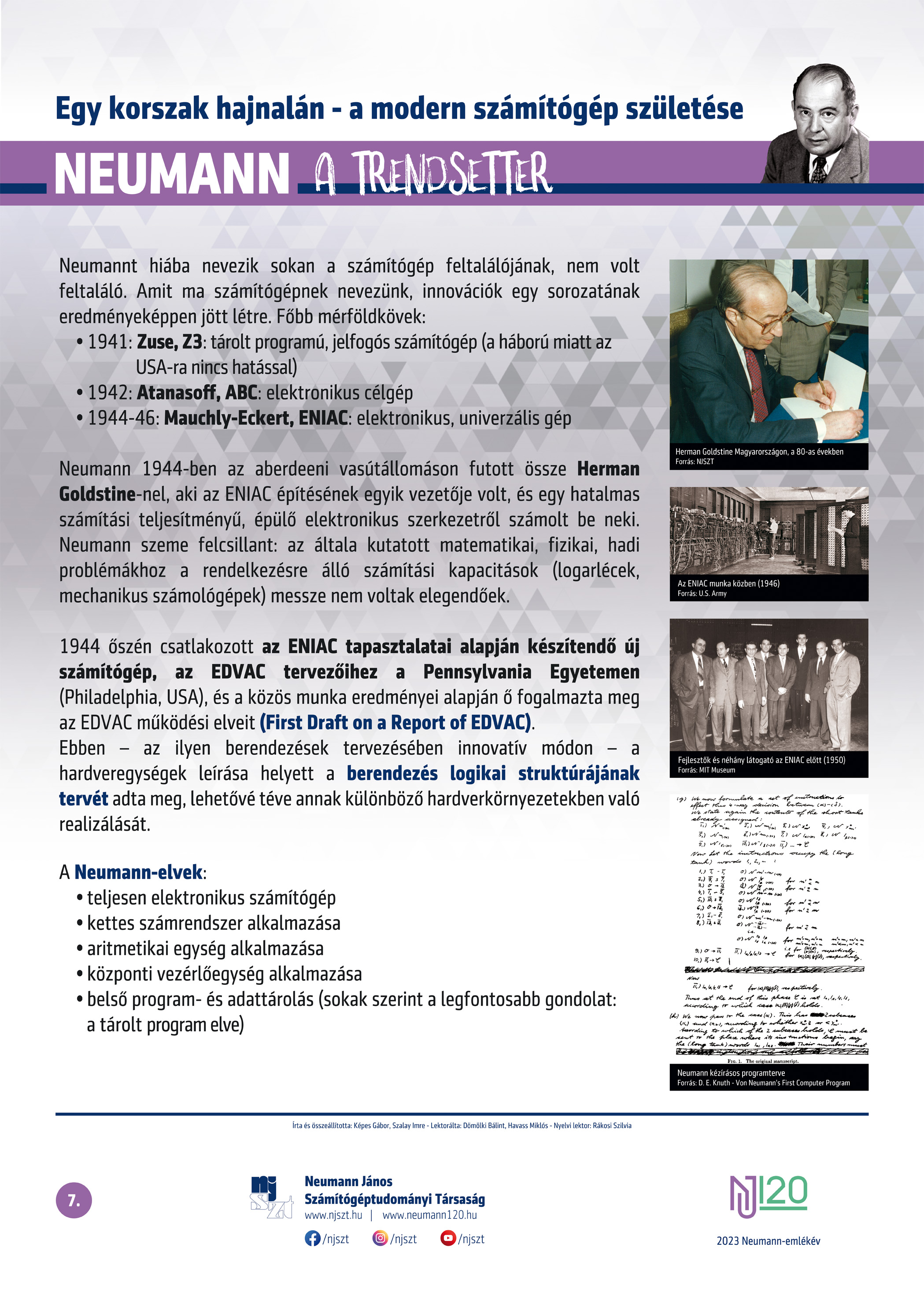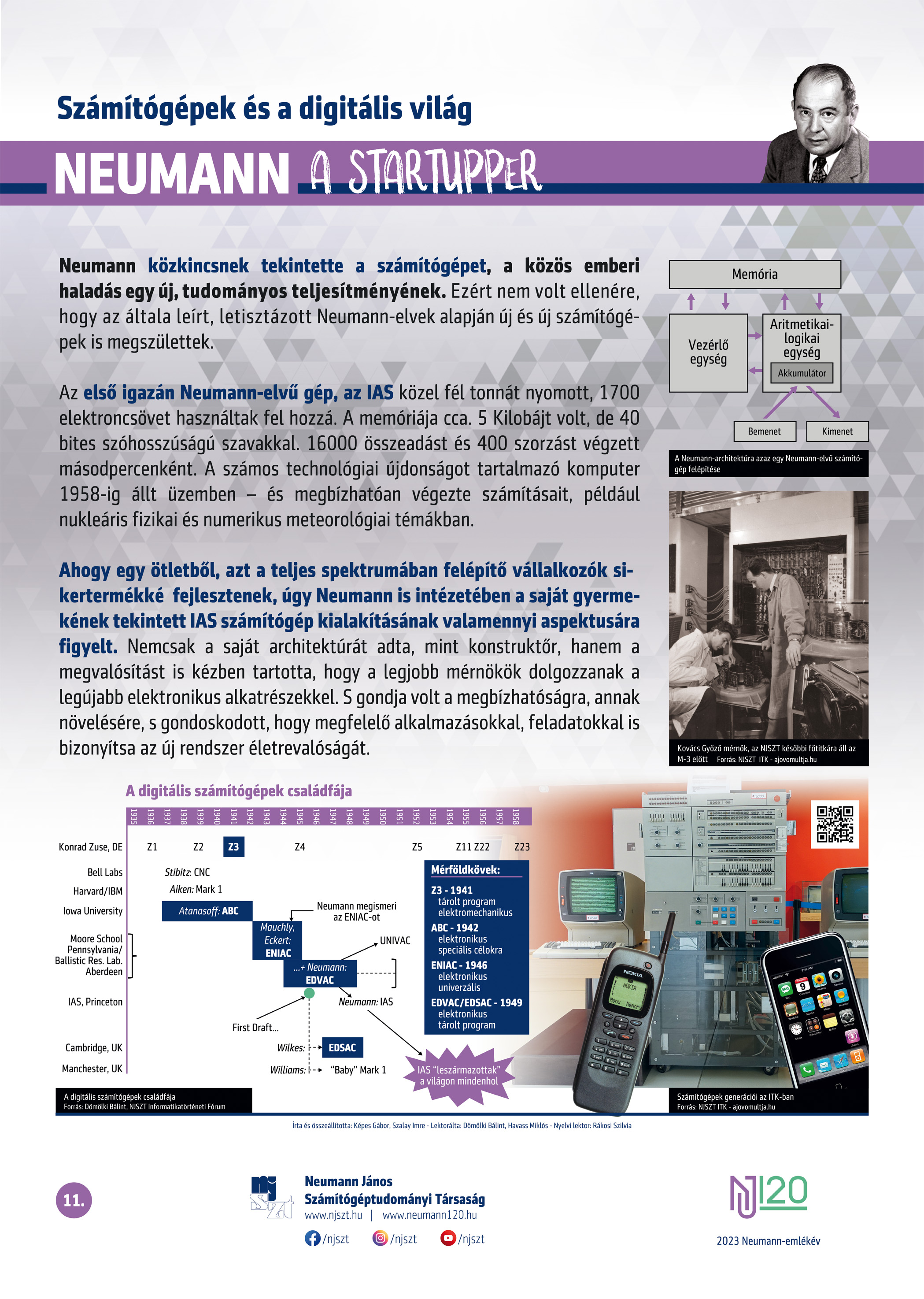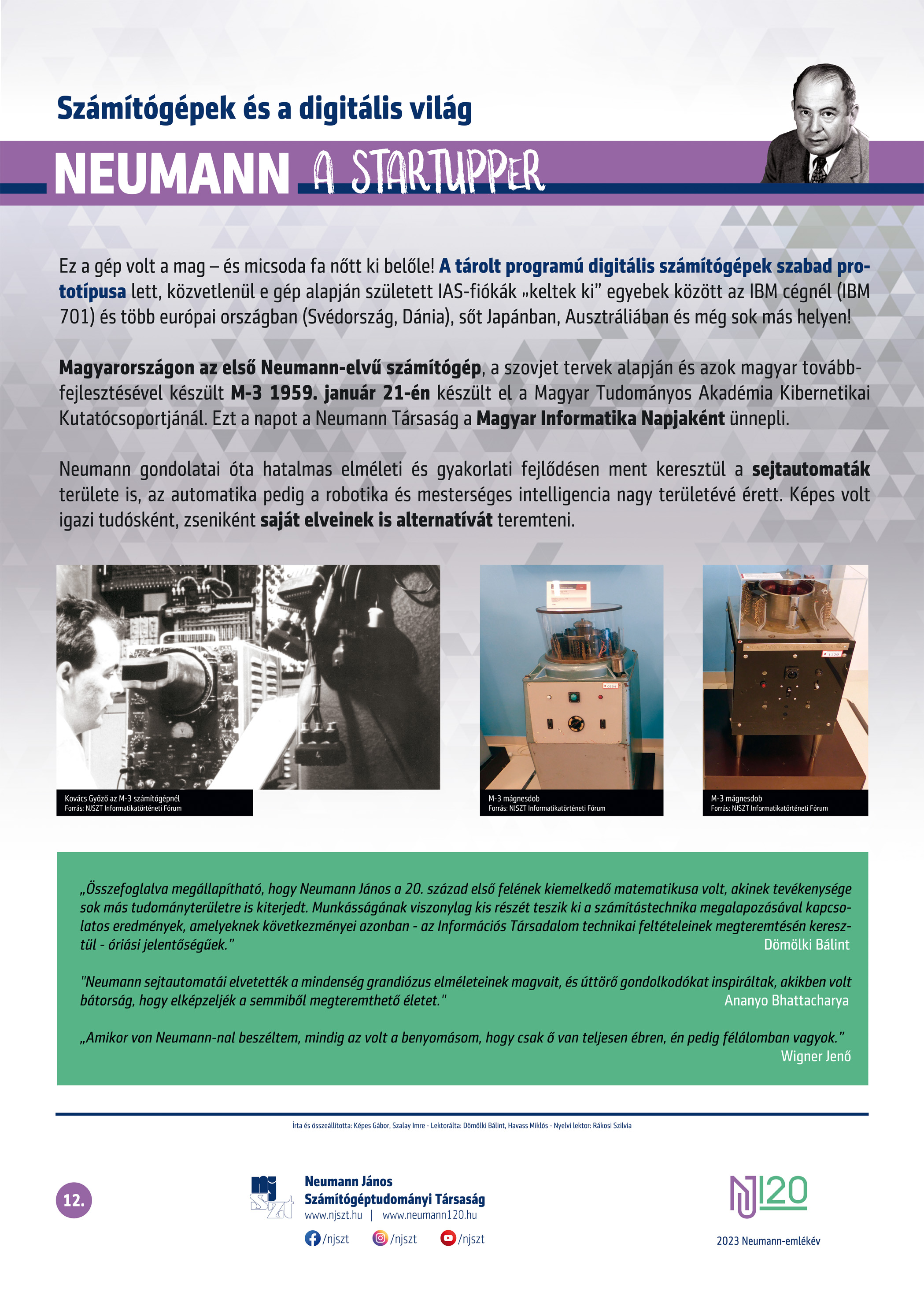 #neumann120 tablósor 2023-tól szerző: Képes Gábor – Szalay Imre, lektor: Dömölki Bálint – Havass Miklós, grafika: Kürtössy Nándor