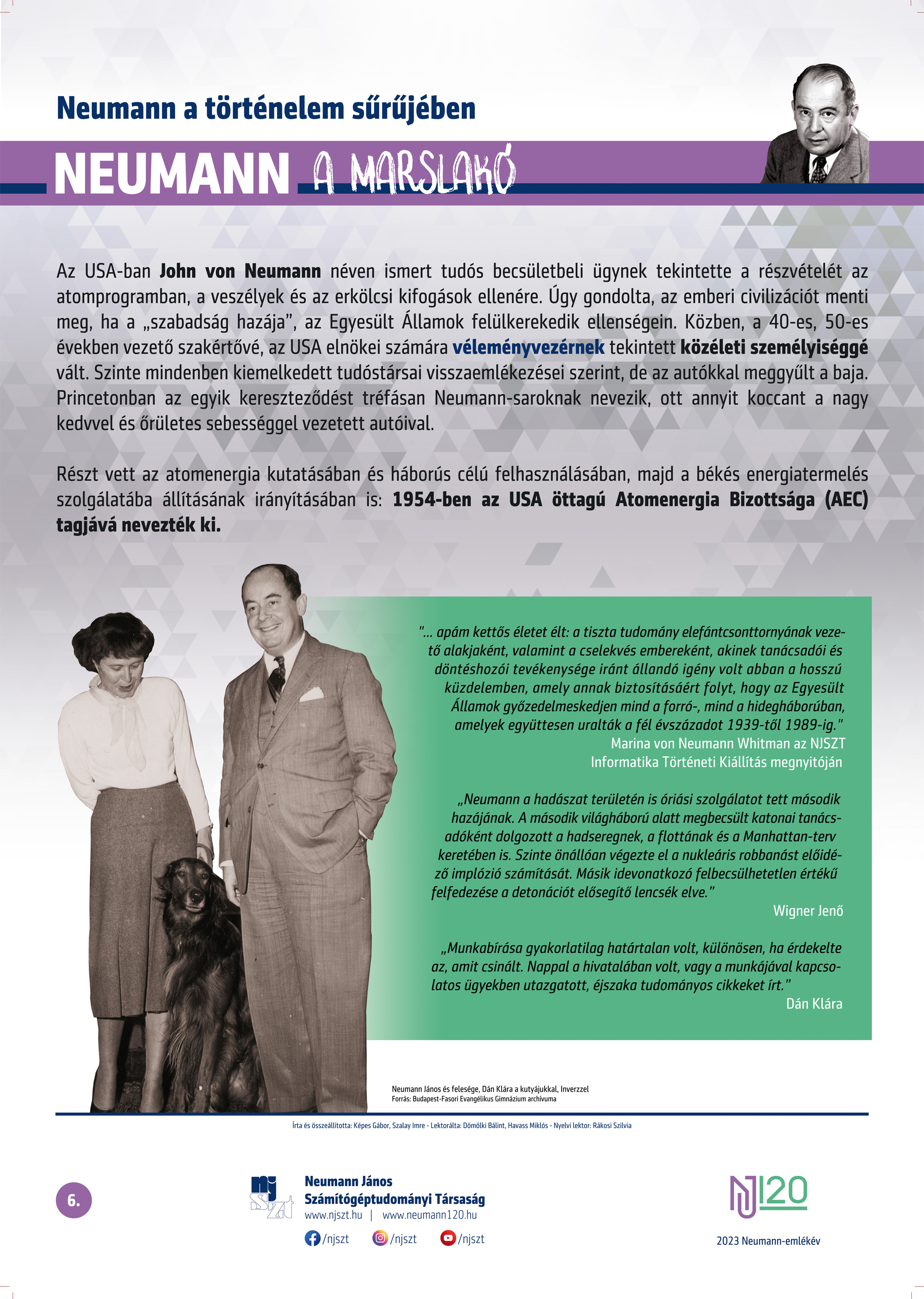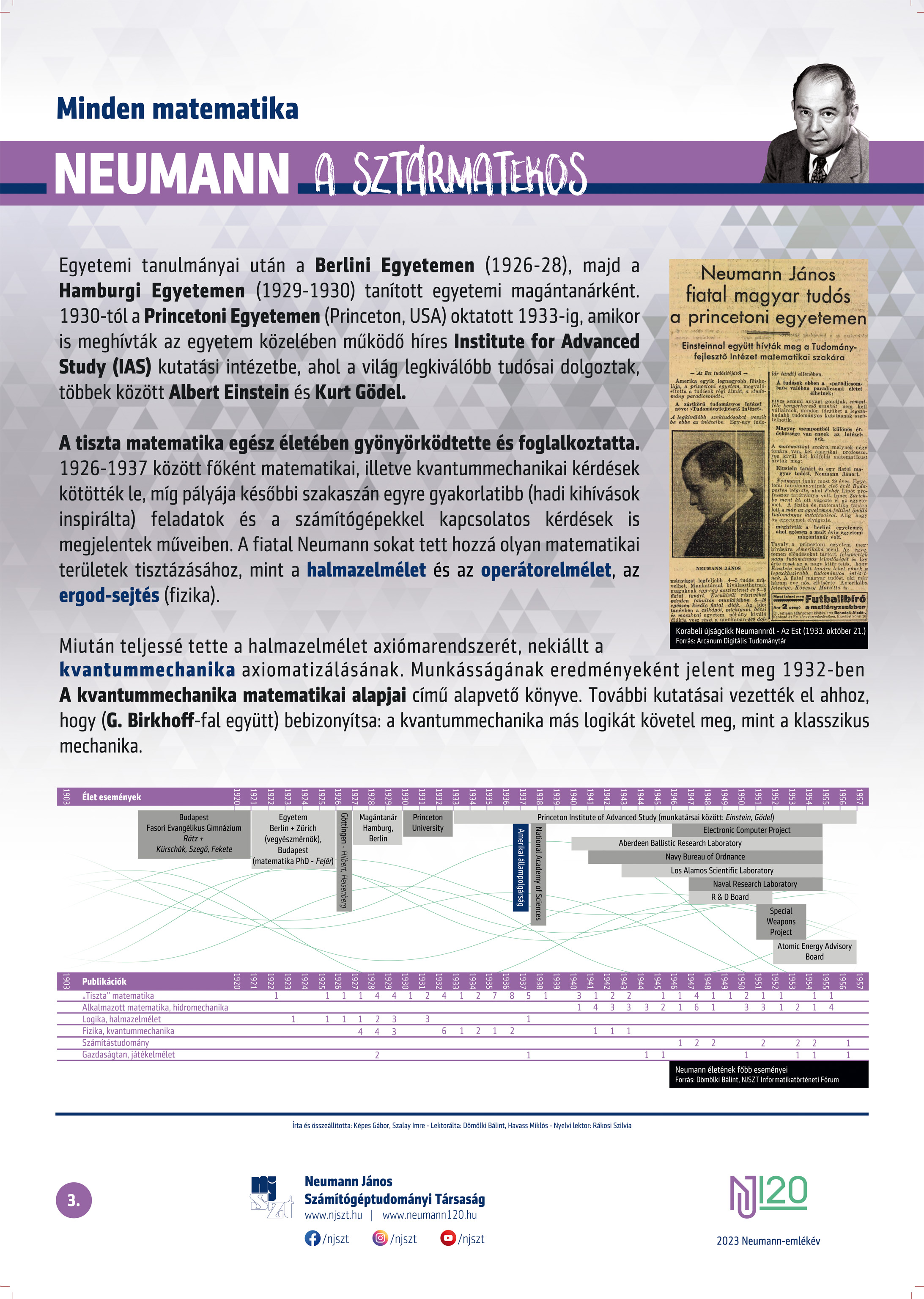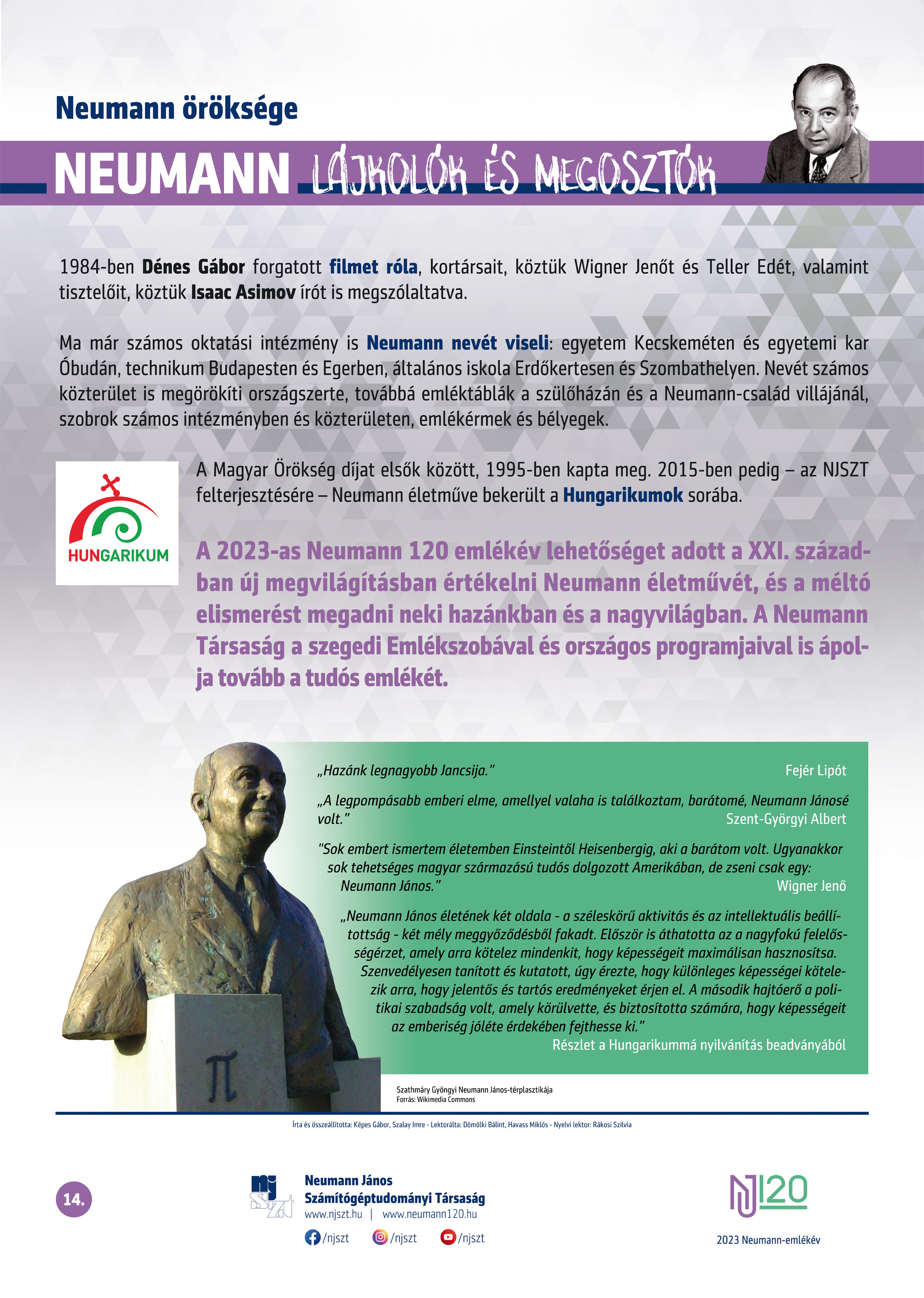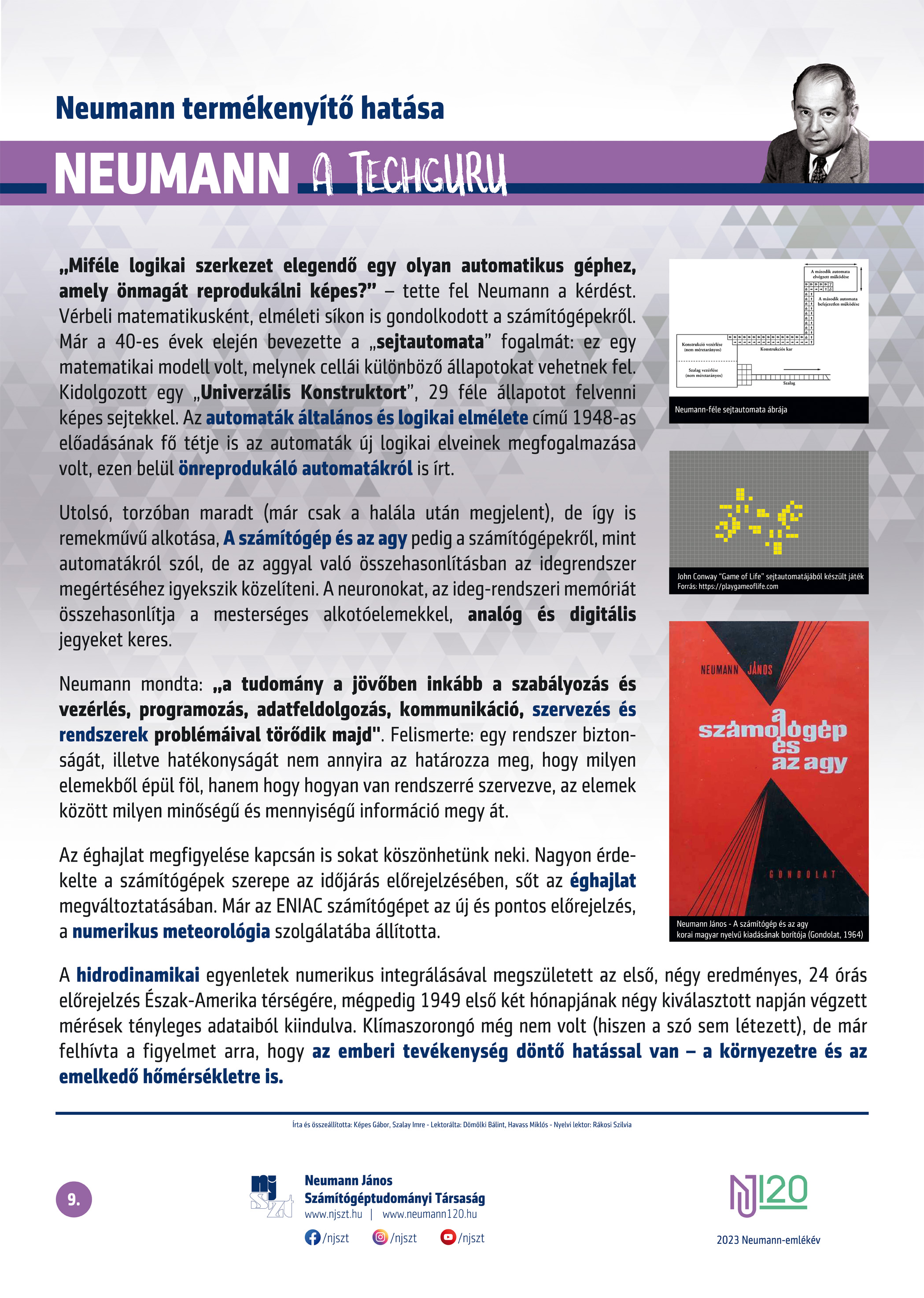 #neumann120 tablósor 2023-tól szerző: Képes Gábor – Szalay Imre, lektor: Dömölki Bálint – Havass Miklós, grafika: Kürtössy Nándor