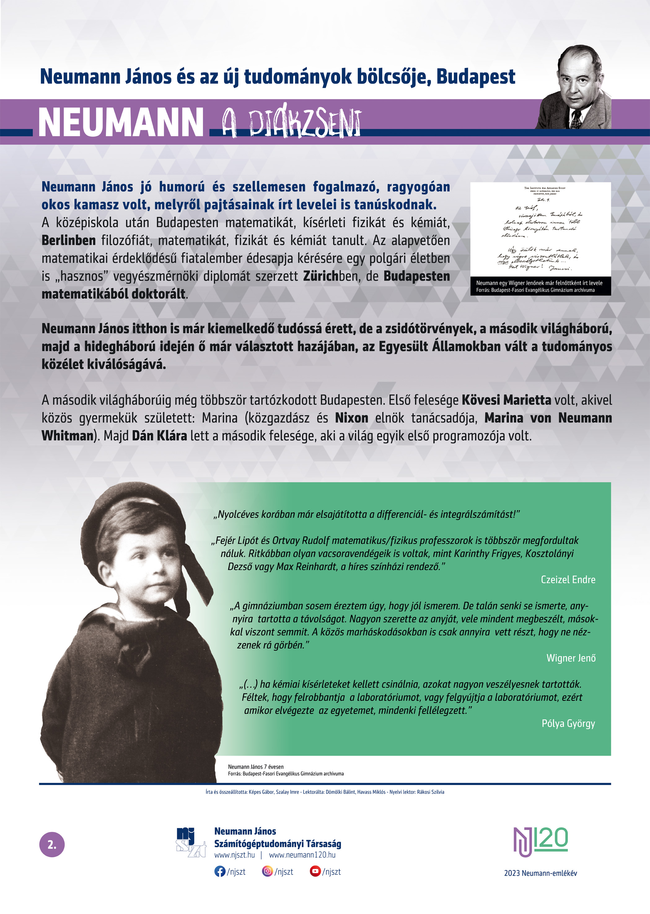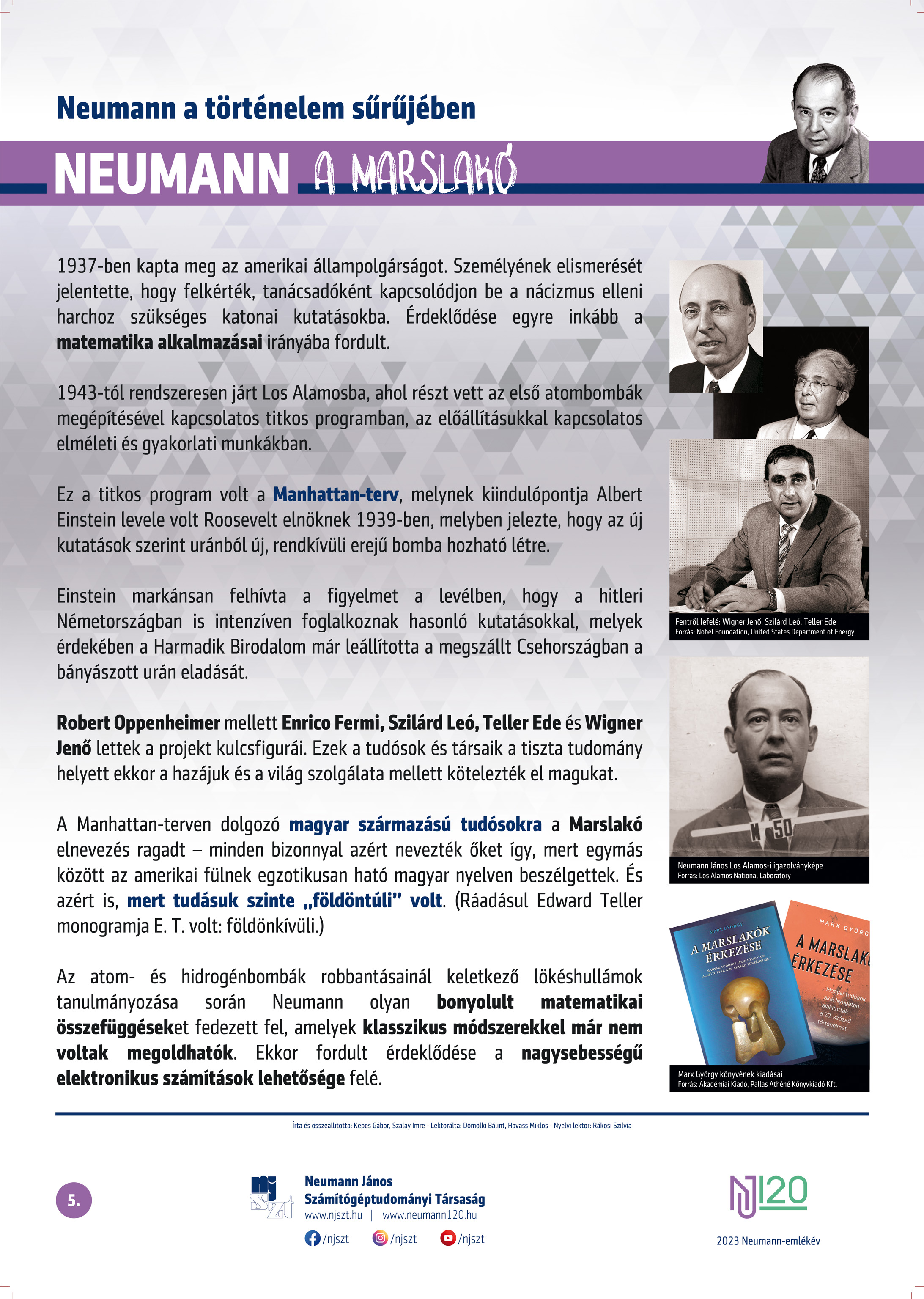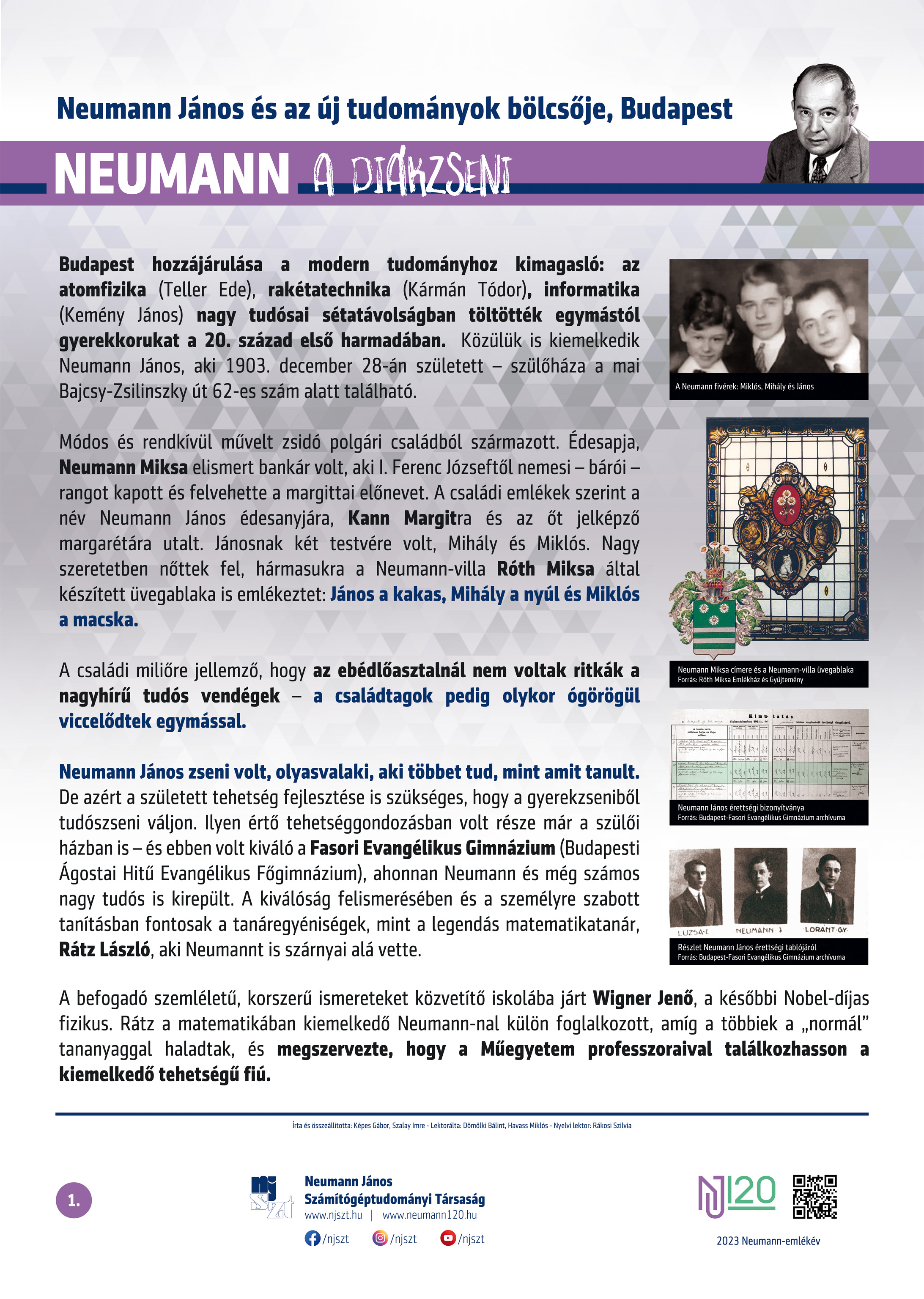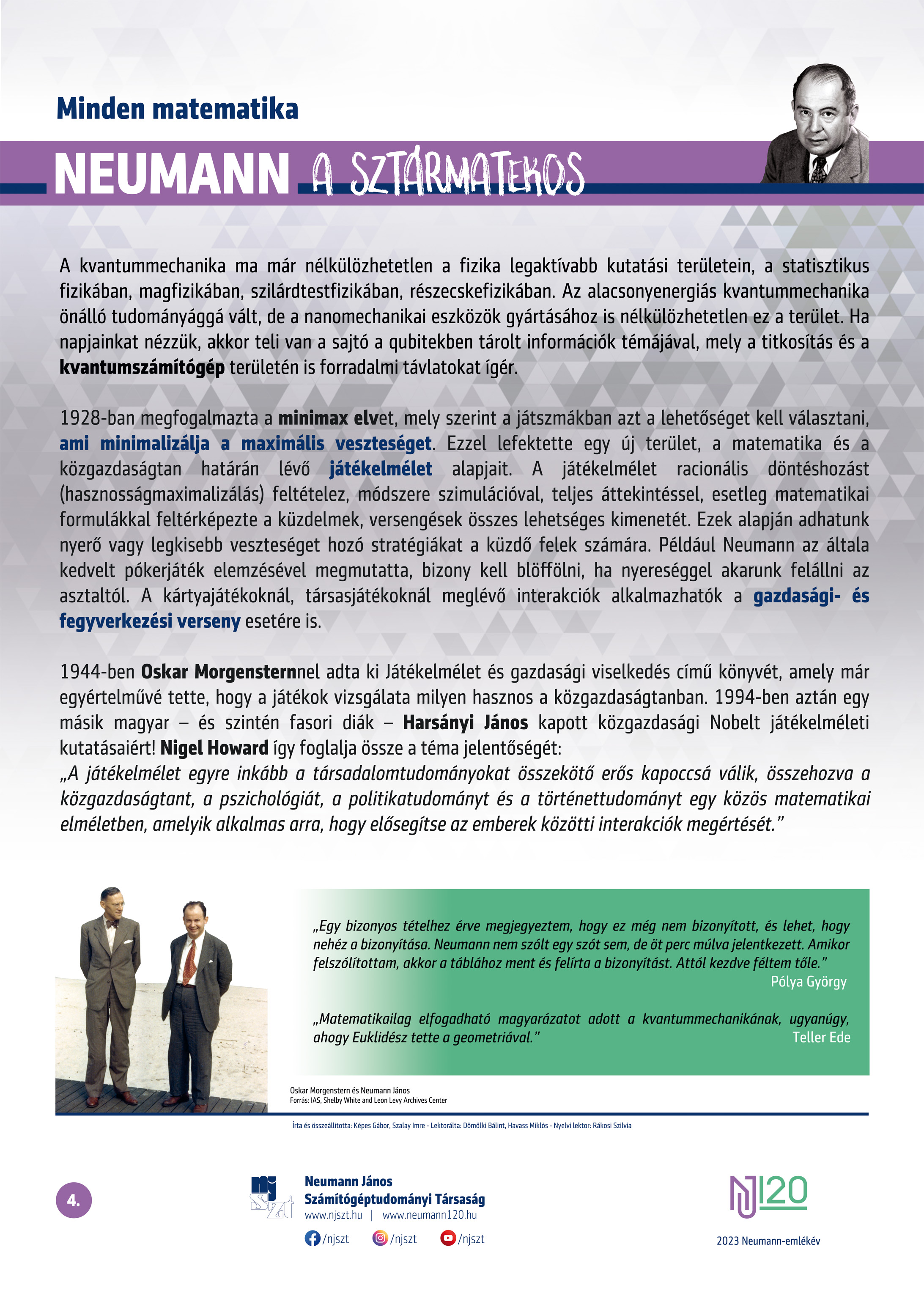 #neumann120 tablósor 2023-tól szerző: Képes Gábor – Szalay Imre, lektor: Dömölki Bálint – Havass Miklós, grafika: Kürtössy Nándor