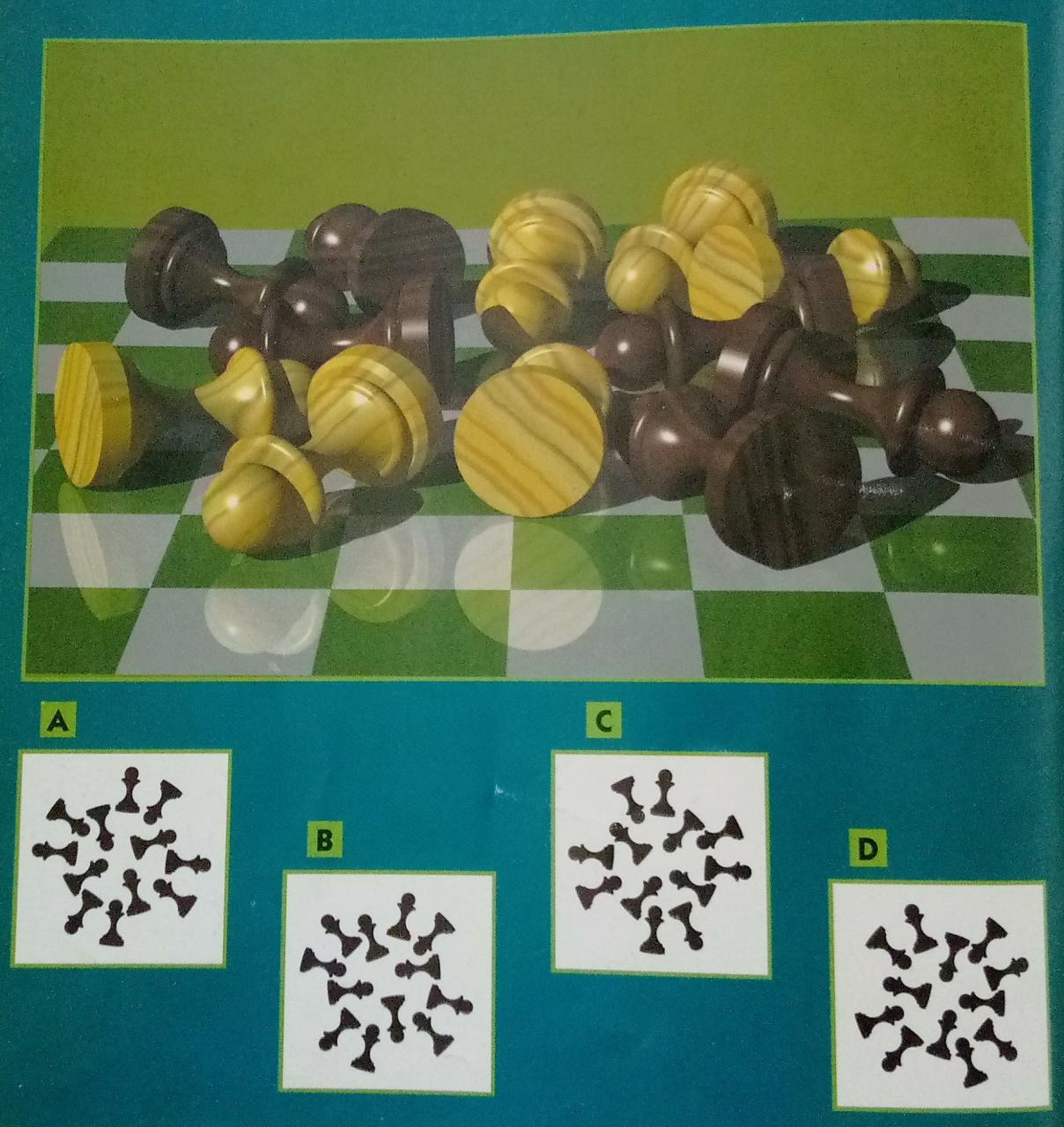 A kiállítás két szintje közötti lépcsőt is bevontuk a játéktérbe, ott egy felülről látott sakktáblát kell azonosítani a lépcsőn felfelé haladva elhelyezett oldalnézetes képeken. Kitartó és leleményes módszerekkel találkozunk: máris kedvelik a látogatók a képzelőerőt, térlátást igénylő játékot. Sakkot kaptunk – és örülünk neki.
