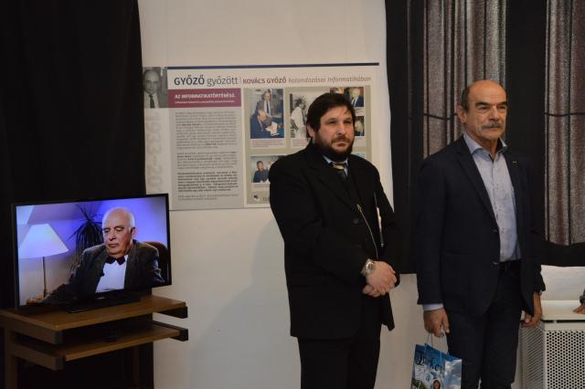 Alföldi István nagy szeretettel emlékezett Kovács Győzőre, aki nemcsak az informatikatörténeti örökségvédelem egyik úttörője volt, de lehengerlő előadó és tudományos ismeretterjesztő is, aki tömegek számára tette elérhetővé az informatika világát. E kiállítás sok közös munkájukra és élményükre is emlékeztet.