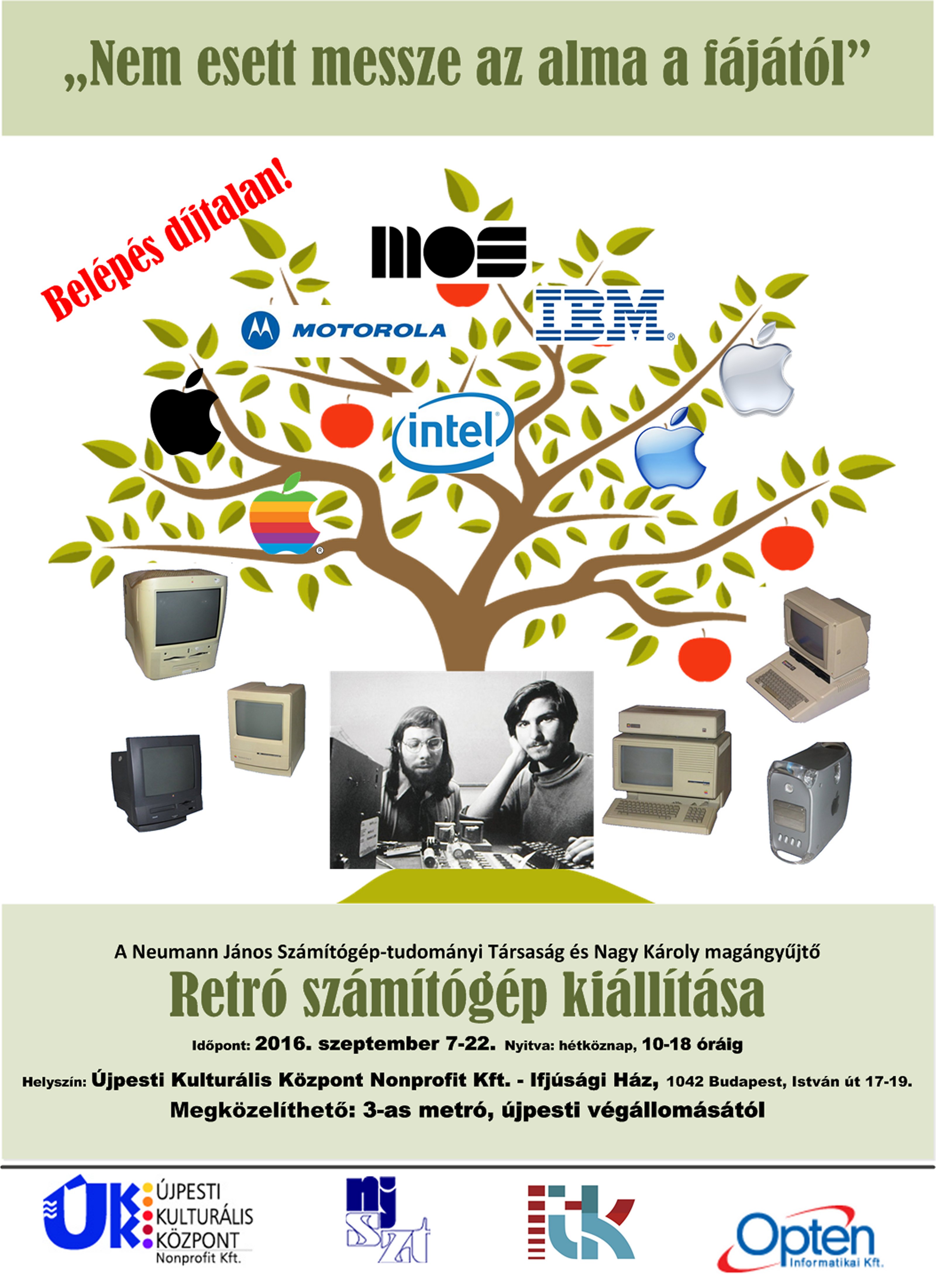 A Nem esett messze az alma a fájától című tárlat impozáns mennyiségben vonultatja fel a Macintosh-gépcsalád számítógépeit, melyek közül többet működés közben tekinthetnek meg az érdeklődők. A több magángyűjtővel együttműködő rendezők a ritka számítógépek és perifériák mellett különleges képeket és dokumentumokat is bemutatnak: az egyik fotón például Göncz Árpád ismerkedik az Apple laptopjával.
